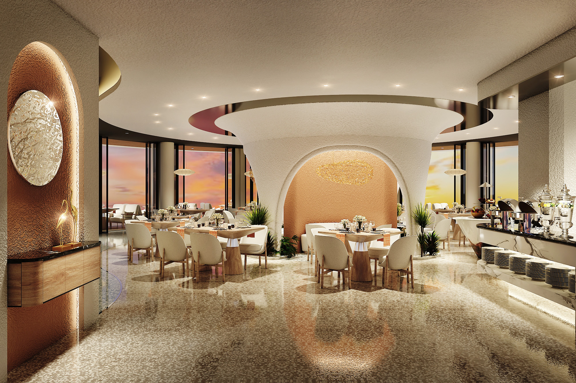 Another very poetic corner for romantic dates is the sea restaurant with 360 degree seaview circular architecture. Just enjoy dinner and experience Mediterranean cuisine served by 5-star chefs from Banyan Tree Group. This is sure to be a memorable experience for any diner.