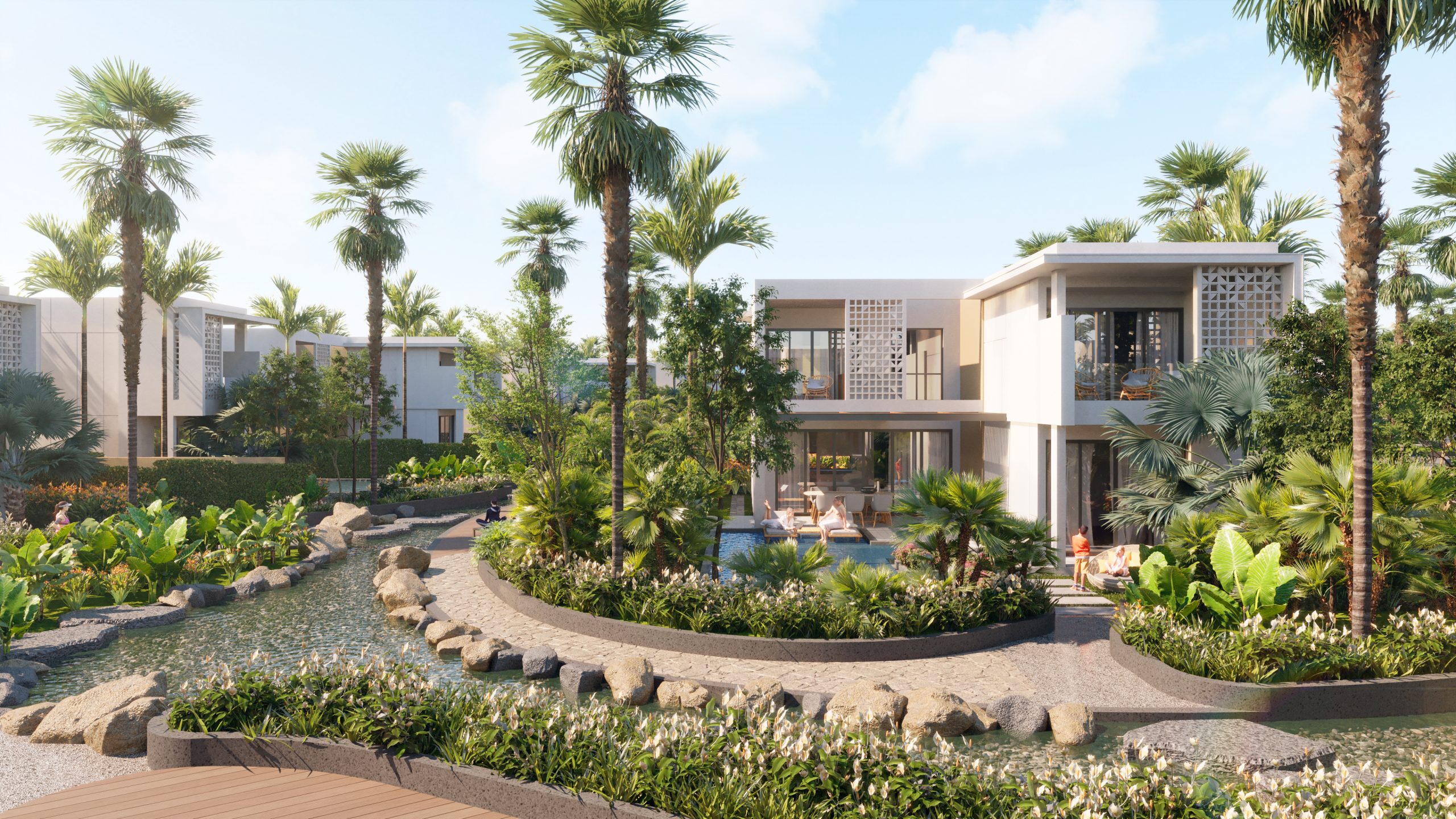 Angsana Residences Ho Tram will be a unique place to return exclusively for those who love nature, plants, are passionate about the sound of waves or the smell of Melaleuca floating in the wind. With the architecture that makes the most of the green space, the construction density is less than 24%, 52 super-limited villas are placed in the continuation of the rich vegetation in Ho Tram. Stepping in from the outside, you will be immediately attracted by the Serenity Stream Walk flowing long, weaving through the villas, the place that helps visitors cool down and relieve from typical heat of the coastal area. It will also be the place that the elite owners of Angsana Residences Ho Tram take a rest, relax and reconnect with themselves in conversation with nature.